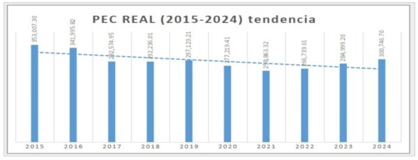 Las resultantes de las reformas de Carlos Salinas: firma de los acuerdos comerciales con los EUA (TLCAN y ahora T-MEC que supeditan los precios de los granos a la Bolsa de Chicago). Este es uno de los contenidos de fondo de las relaciones comerciales con los EUA que el gobierno norteamericano y sus repetidores en México buscan mantener oculto en los medios de comunicación para lo cual llevan a cabo el simulacro con confrontaciones permanentes absurdas, ilógicas, irracionales, incoherentes, y pocas veces significativas. La reforma de Carlos Salinas al artículo 27 de la Constitución es la otra gran causa poderosa de la debacle cuyo contenido entrega en bandeja de oro territorios, agua, minerales, bosques, costas etc. a las grandes empresas transnacionales. Un tercer factor decisivo es la caída del presupuesto desde el 2015 y hasta la actualidad como se muestra en la gráfica.